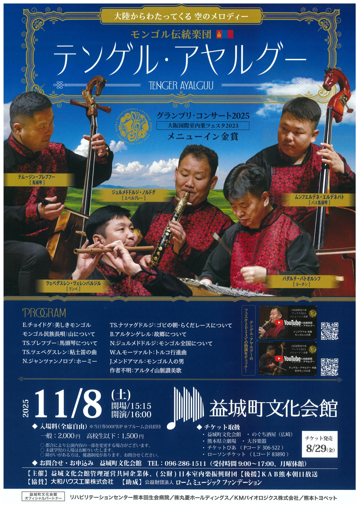 益城町文化会館 / のぐち酒屋(広崎)/ 熊本県立劇場 /大谷楽器 /チケットぴあ(Pコード 306-522) /